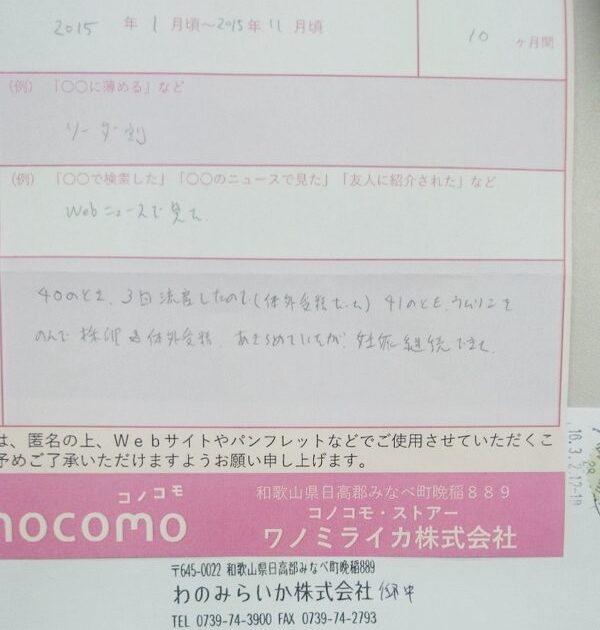 体外受精であまり採卵できなかったことから、今後に備えてウムリンを注文しました。結果的には、ウムリンを飲む前の受精卵で妊娠できたので、出産後にまた飲んで効果を実感してみたいです。