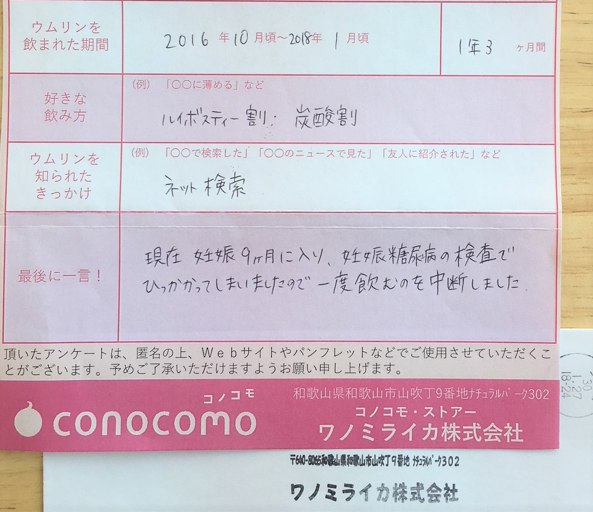 現在妊娠9ヶ月に入り、妊娠糖尿病の検査でひっかかってしまいましたので一度飲むのを中断しました。