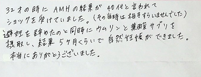32才の時にAMHの結果が40代と言われてショックを受けていました。(当時は相手すらいませんでした)
