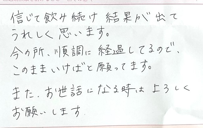 今の所、順調に経過してるので、このままいけばと願っています。