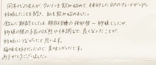 同年代の友人がウムリンを飲み始めて、私も飲み始めました。