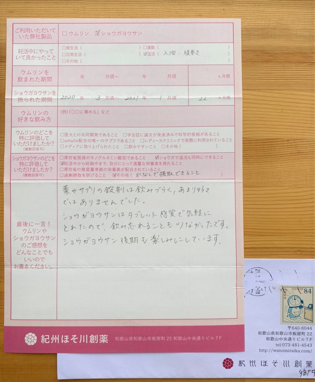 ショウガヨウサンはタブレット感覚で気軽にとれたので、飲み忘れることも少なかったです。ショウガヨウサン後期も楽しみにしています。