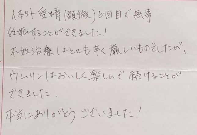 ウムリンはおいしく楽しんで続けることができました。 本当にありがとうございました!