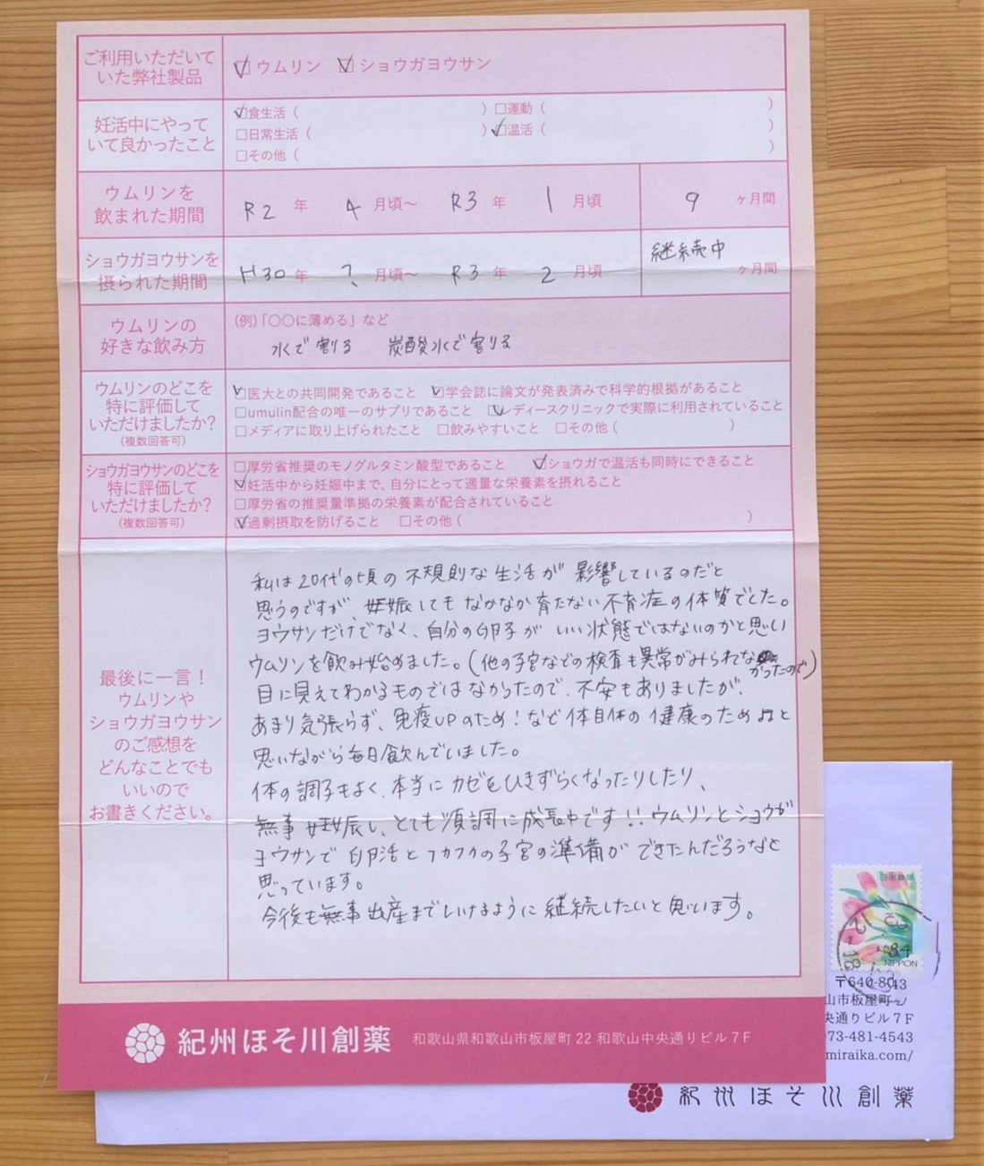 体の調子も良く本当にカゼをひきずらくなったりしたり、今後も無事出産までいけるように継続したいと思います。