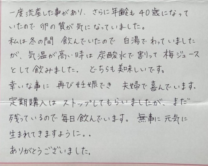 定期購入はストップしてもらいましたが、まだ残っているので毎日飲んでいます。無事に元気に生まれてきますように。