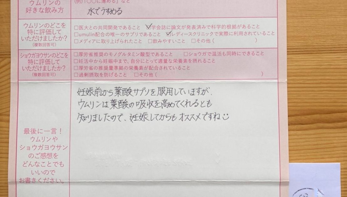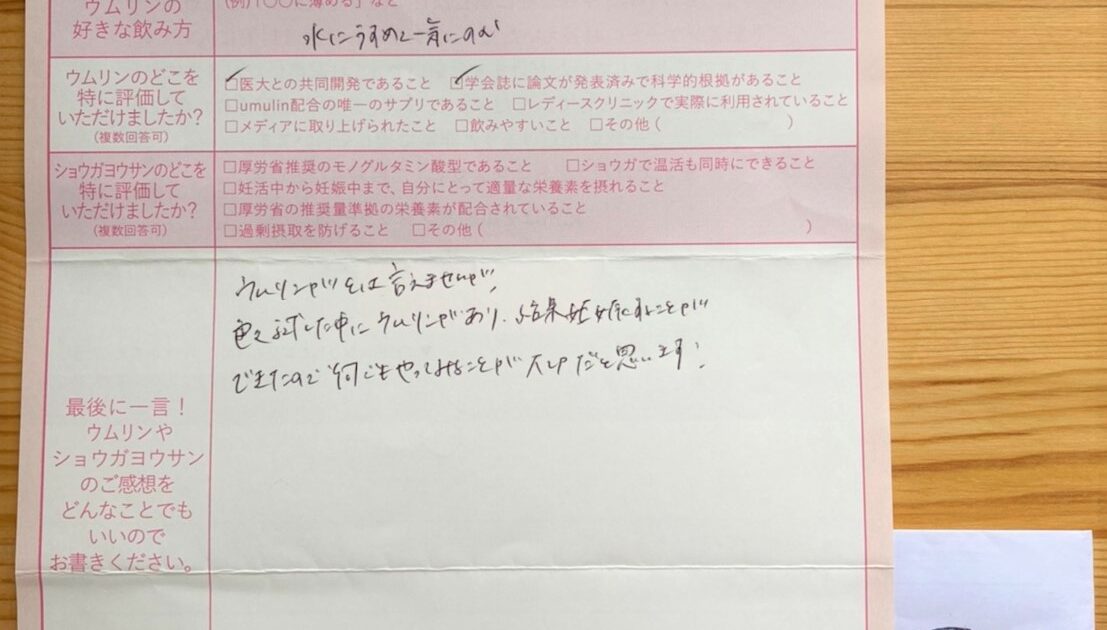 これは本当にウムリンのおかげだと思っています。感謝しております。そして同じく子を望む全ての方へどうかお子を授かれますように願っています。