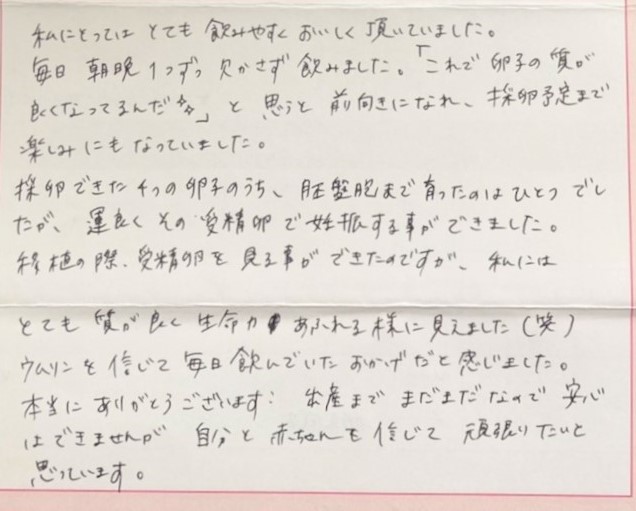 ウムリンを信じて毎日飲んでいたおかげだと感じました。