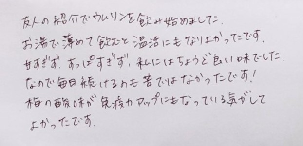 甘すぎず、すっぱすぎず、私にはちょうど良い味でした。なので毎日続けるのも苦ではなかったです!梅の酸味が免疫力アップにもなっている気がしてよかったです。