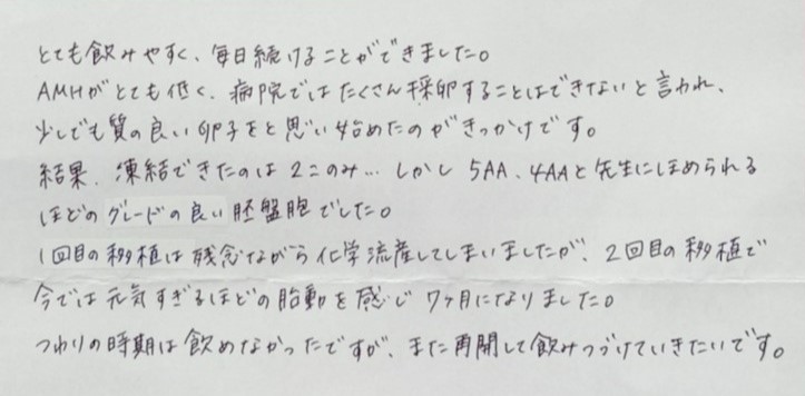 とても飲みやすく、毎日続けることができました。 つわりの時期は飲めなかったのですが、また再開して飲み続けていきたいです。