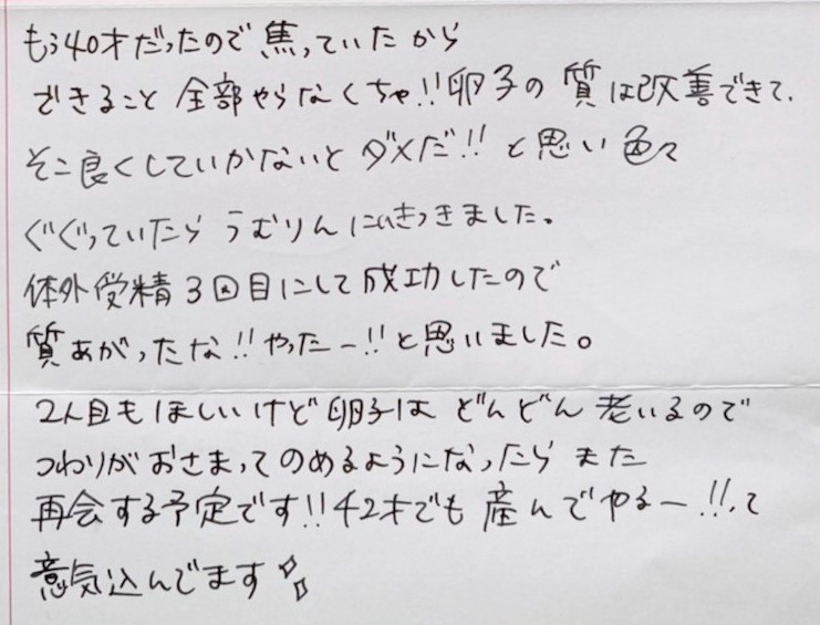 もう40才だったので焦っていたからできること全部やらなくちゃ!! と思い色々ぐぐっていたらうむりんにいきつきました。