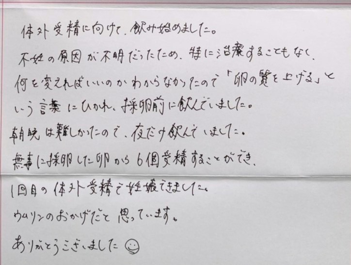朝晩は難しかったので、夜だけ飲んでいました。ウムリンのおかげだと思っています。ありがとうございました。