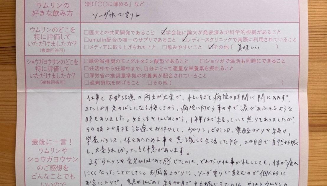 これまで順調に維持できたのもウムリンのおかげだと思っています。ウムリンの奇跡を信じて本当に良かったです!ありがとうございました!!