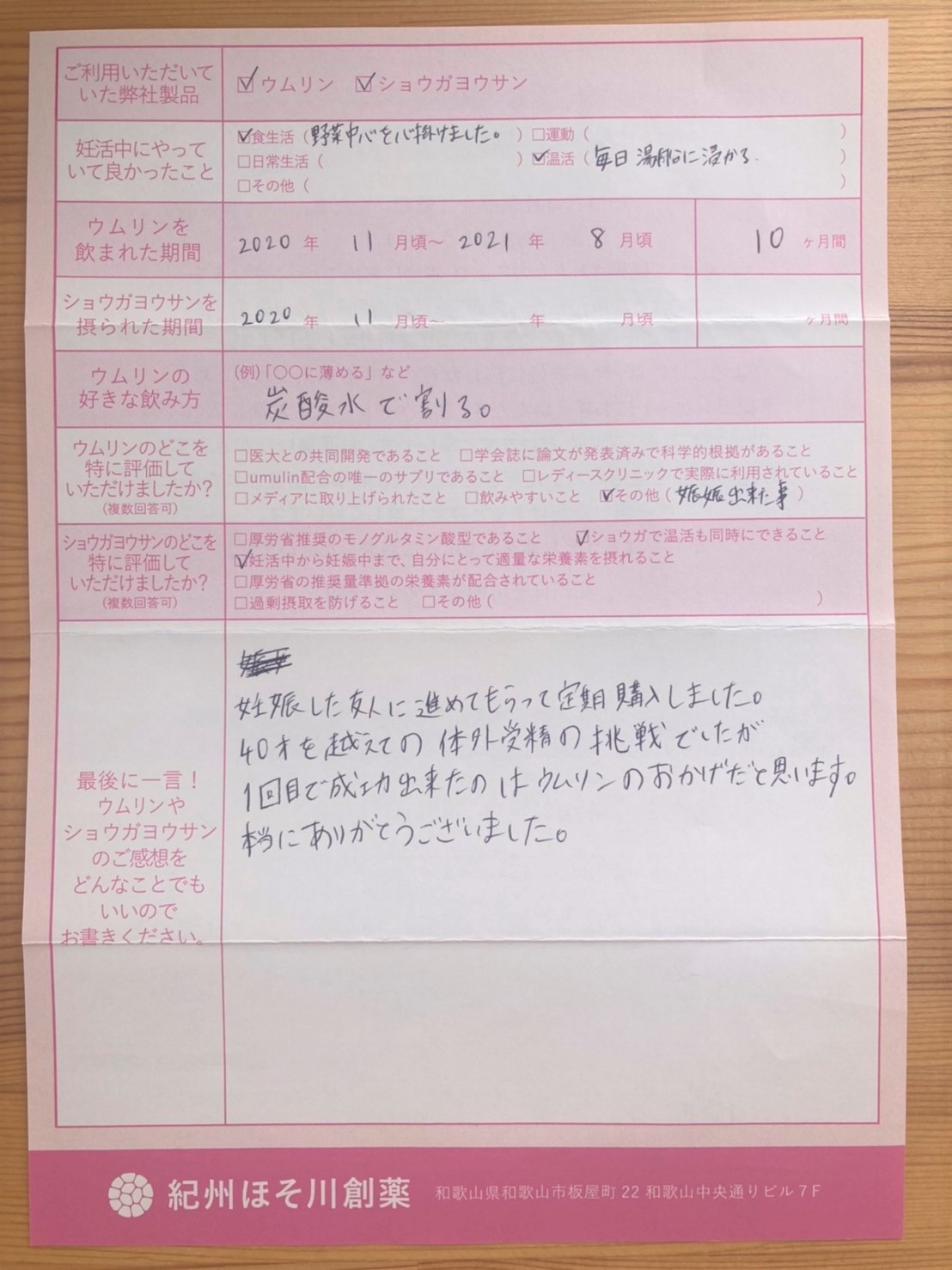 友人に進めてもらって定期購入しました。ウムリンのおかげだと思います。本当にありがとうございました。