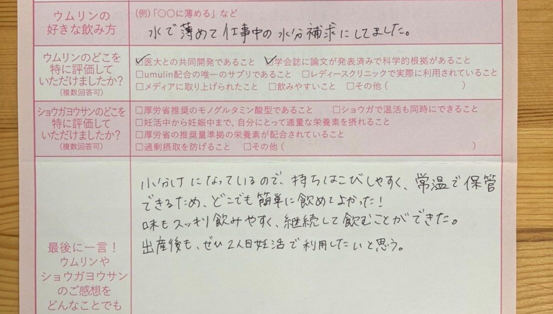 40才を過ぎていましたが順調にいけたのは、ウムリンのおかげかなと思いました。ありがとうございました