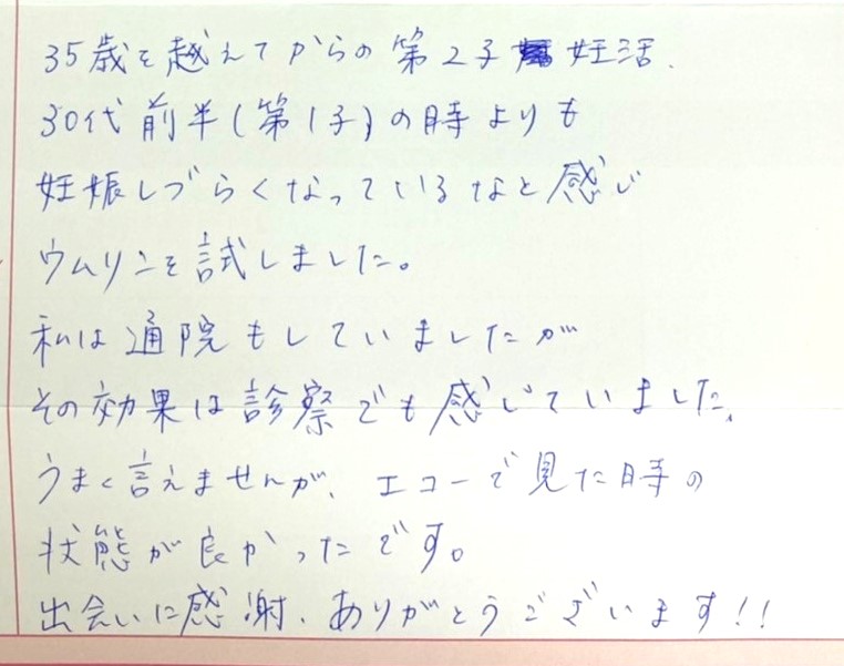 私は通院もしていましたがその効果は診察でも感じていました。うまく言えませんが、エコーで見た時の状態が良かったです。出会いに感謝、ありがとうございます!!
