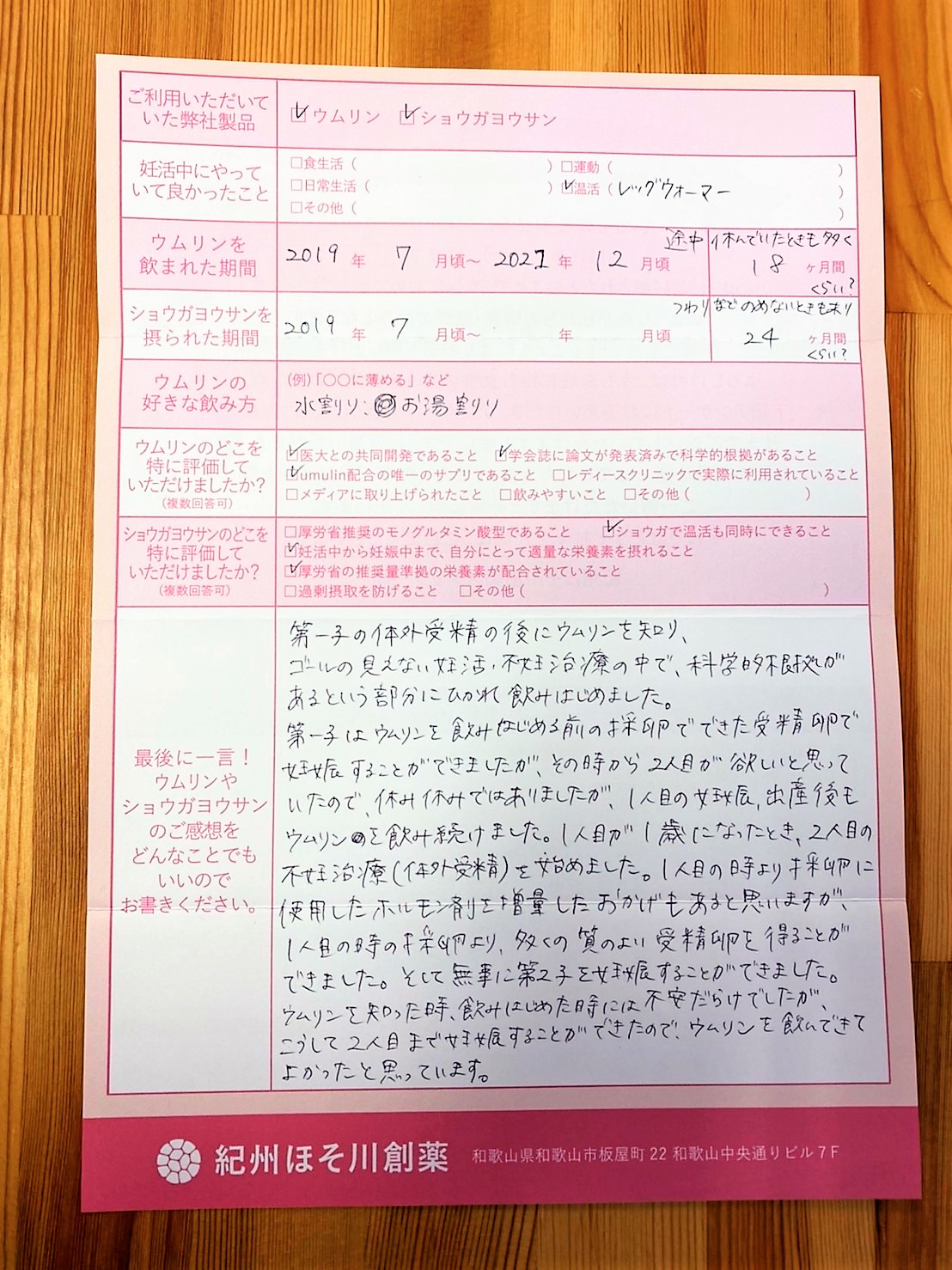ウムリンを知り、飲みはじめました。休み休みではありましたが、ウムリンを飲み続けました。ウムリンを知った時、飲みはじめた時には不安だらけでしたが、ウムリンを飲んできてよかったと思っています。