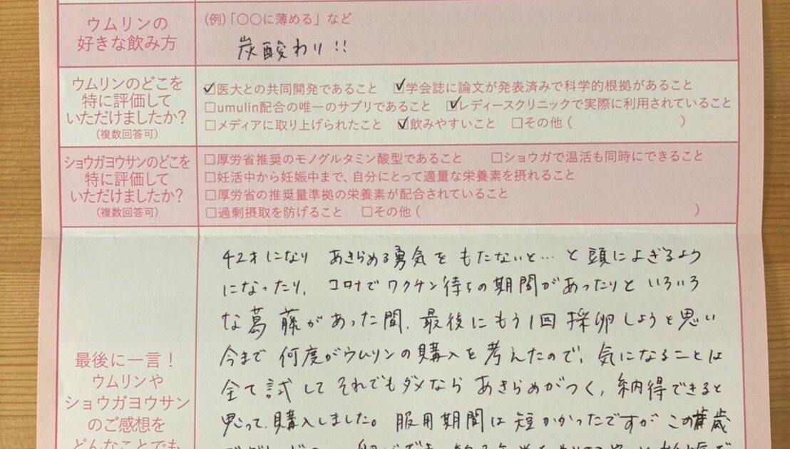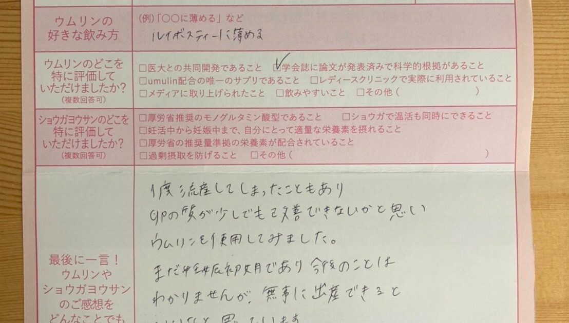 何か他にできることはないかと探したのがきっかけでウムリンに辿り着きました。リラックスでき、すごく心の支えになっていました。今は飲む頻度を減らしていますが、もうしばらく飲み続けたいと思っています。