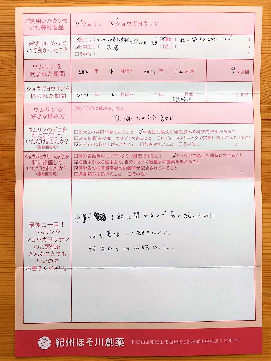 少量で手軽に摂れるので、長く続けられた。味も美味しくて飽きにくい。とても心強かった。