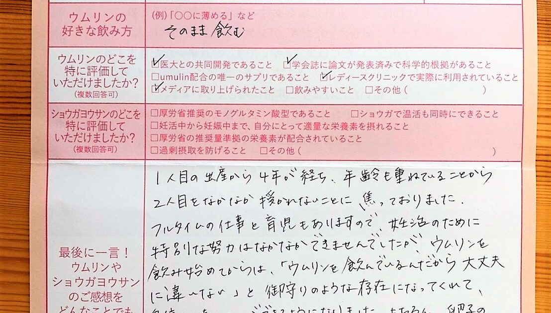 フルタイムの仕事と育児もありますので、特別な努力はなかなかできませんでしたが、ウムリンを飲み始めてからは、御守りのような存在になってくれて、自信を持つことができるようになりました。メンタル面での支えも私には大きかったよう […]