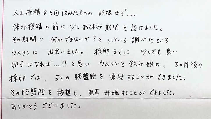 何かできないか?といろいろ調べたところウムリンに出会いました。ありがとうございました。