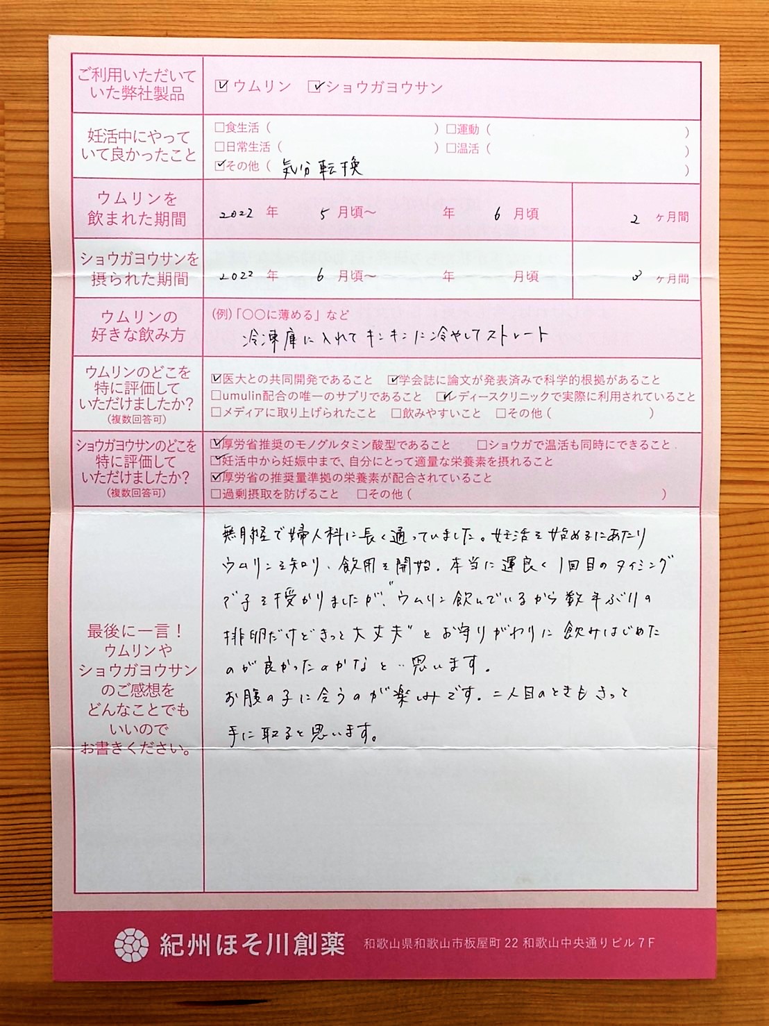 ウムリンを知り、飲用を開始。きっと大丈夫とお守りがわりに飲みはじめたのが良かったのかなと思います。