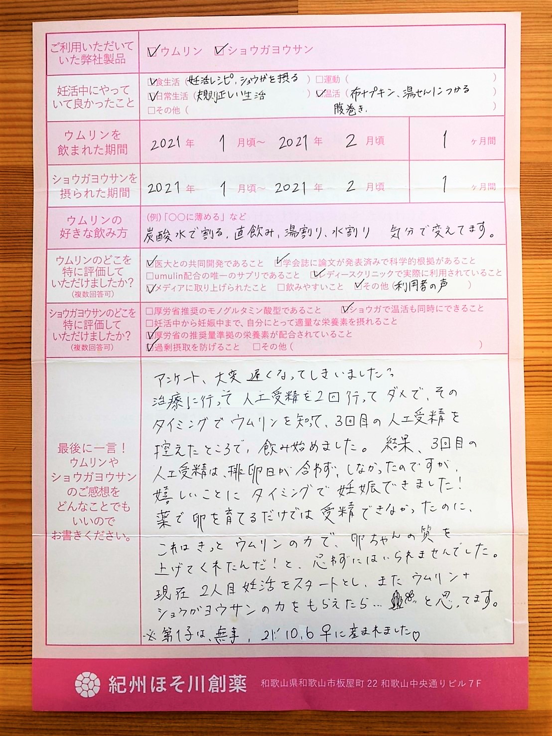 アンケート、大変遅くなってしまいました💦ウムリンを知って、飲みはじめました。またウムリン+ショウガヨウサンの力をもらえたら…と思ってます。