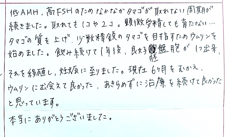 ウムリンを始めました。ウムリンに出会えて良かった、あきらめずに続けて良かったと思っています。本当にありがとうございました。