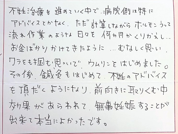 ワラをも掴む思いでウムリンをはじめました。本当によかったです。