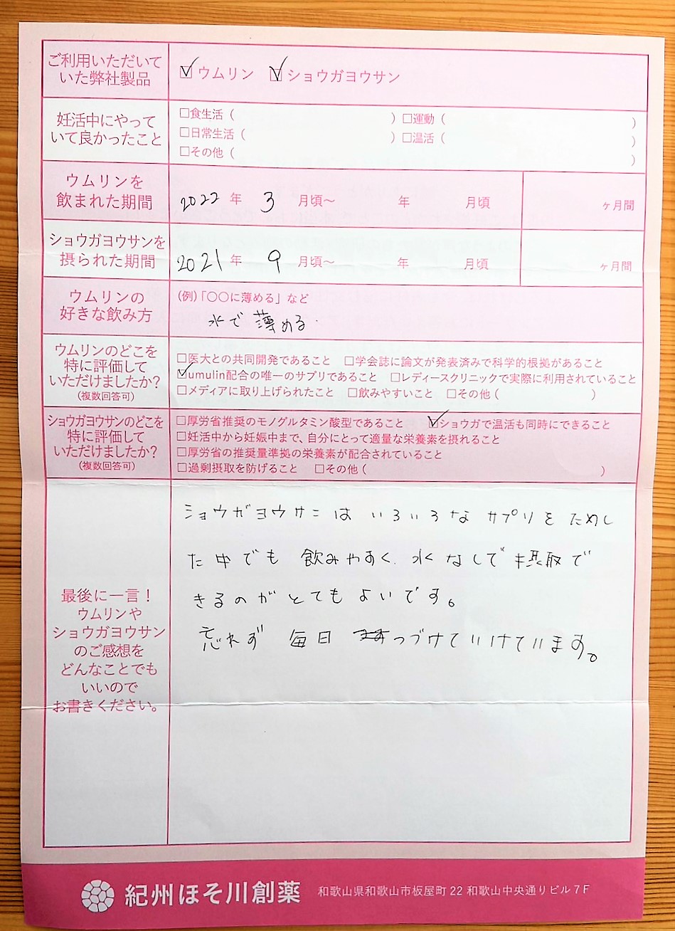 ショウガヨウサンはいろいろなサプリをためした中でも飲みやすく、水なしでも摂取できるのがとてもよいです。忘れず毎日つづけていけています。