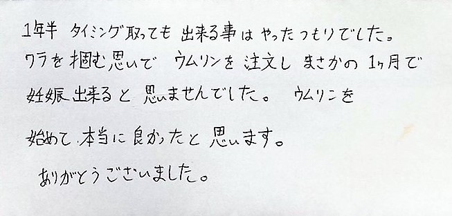1年半出来る事はやったつもりでした。ワラを掴む思いでした。ウムリンを始めて、本当に良かったと思います。ありがとうございました。