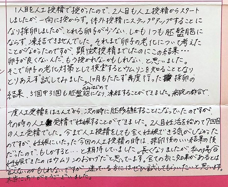 検索するとウムリンを知ることとなりとりあえず試してみました。迷っている方にはぜひ試してもらいたいと思います。本当にありがとうございました。