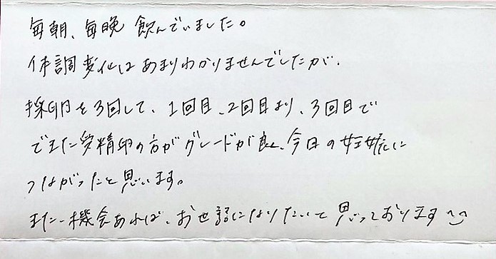 毎朝、毎晩飲んでいました。また機会あれば、お世話になりたいと思っております(^v^)