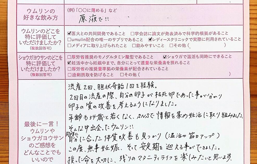 喜び速報 梅が好きなので 2023.03.06 by umulinlab 0 すっぱいもの・梅が好きなので、苦なく続けられるかと思い始めました。個人的には低糖質のumulinの方があっさりしていて飲みやすかったです。正直、一日2袋が飲めない日も多かったのですが、よかったです。ショウガヨウサンは味も […]