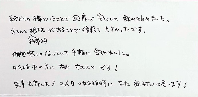紀州の梅ということで国産で安心して飲み始めました。信頼も大きかったです。個包装になっていて手軽に飲めました。オススメです!また飲みたいと思います!