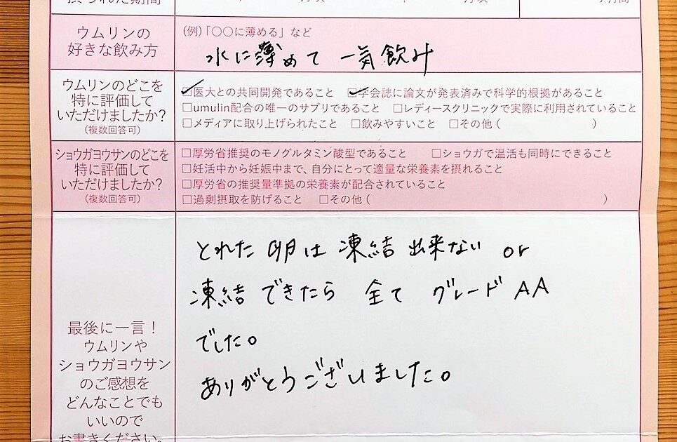 知人からウムリンを教えてもらい、飲み始めました。ウムリンに心から感謝しています。ありがとうございました!!
