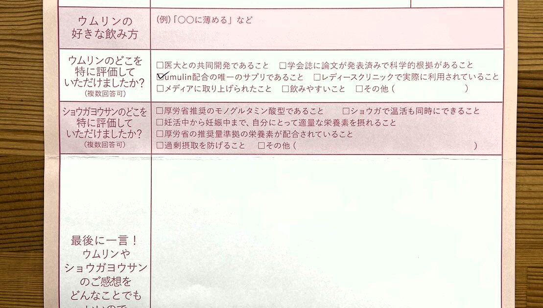 いろいろな物に手を出す程の余裕は無かったものの、たまたまたまSNSで見たウムリンに興味を持ち飲み始めました。飲み続けて良かったなと思いました。お守り的な存在にはなっていました。