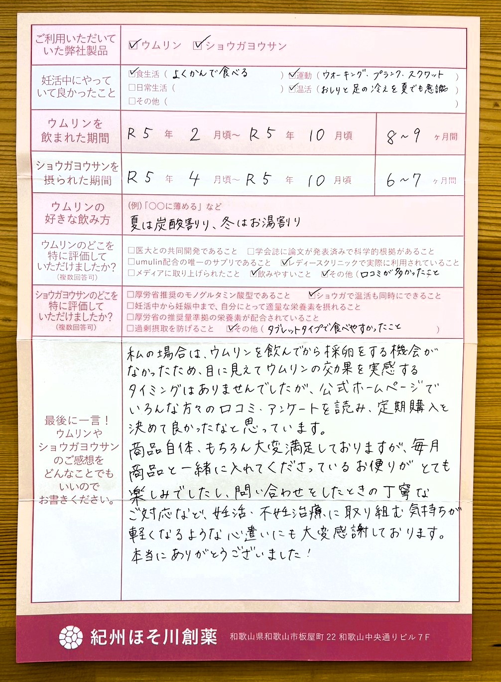 公式ホームページでいろんな方々のロコミ・アンケートを読み、定期購入を決めて良かったなと思っています。商品自体、もちろん大変満足しておりますが、毎月商品と一緒に入れてくださっているお便りがとても楽しみでしたし、問い合わせをしたときの丁寧なご対応など、取り組む気持ちが軽くなるような心遣いにも大変感謝しております。本当にありがとうございました!