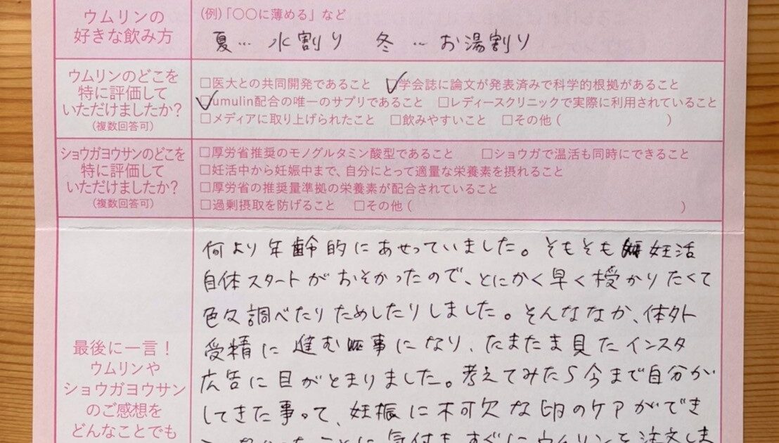 何より年齢的にあせっていました。たまたま見たインスタ広告に目がとまりました。本当にありがとうございました!