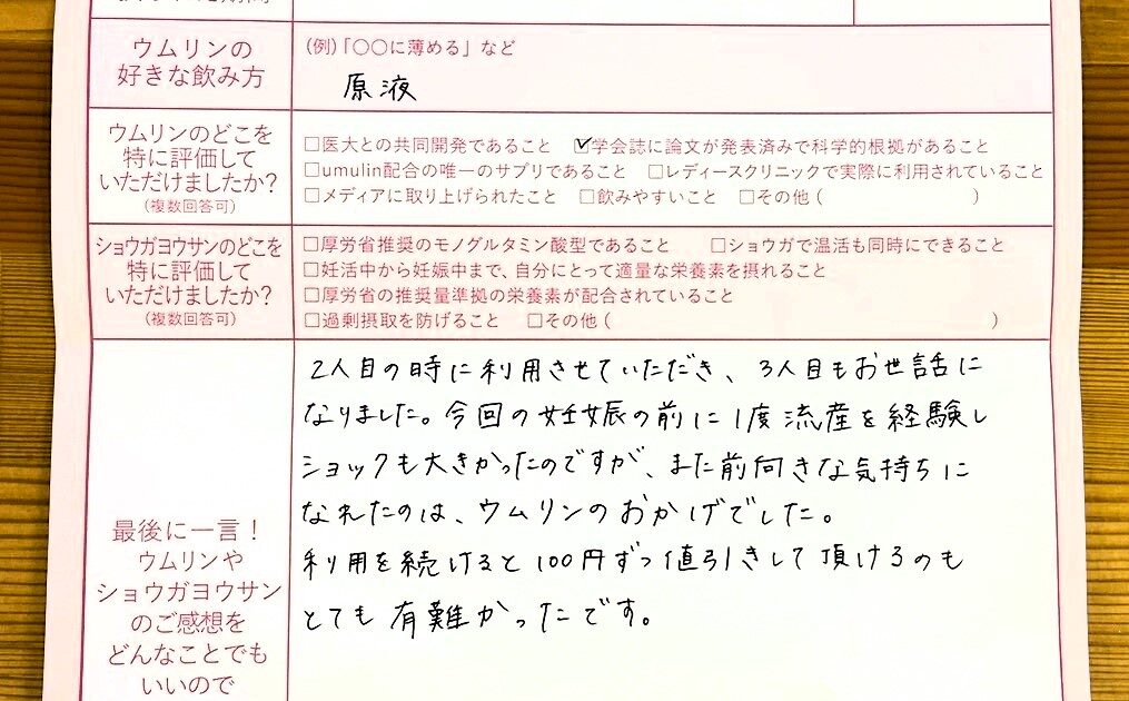 ウムリンは、飲みやすく飽きもこず、続けやすかったです。毎日飲み続けて良かったです。