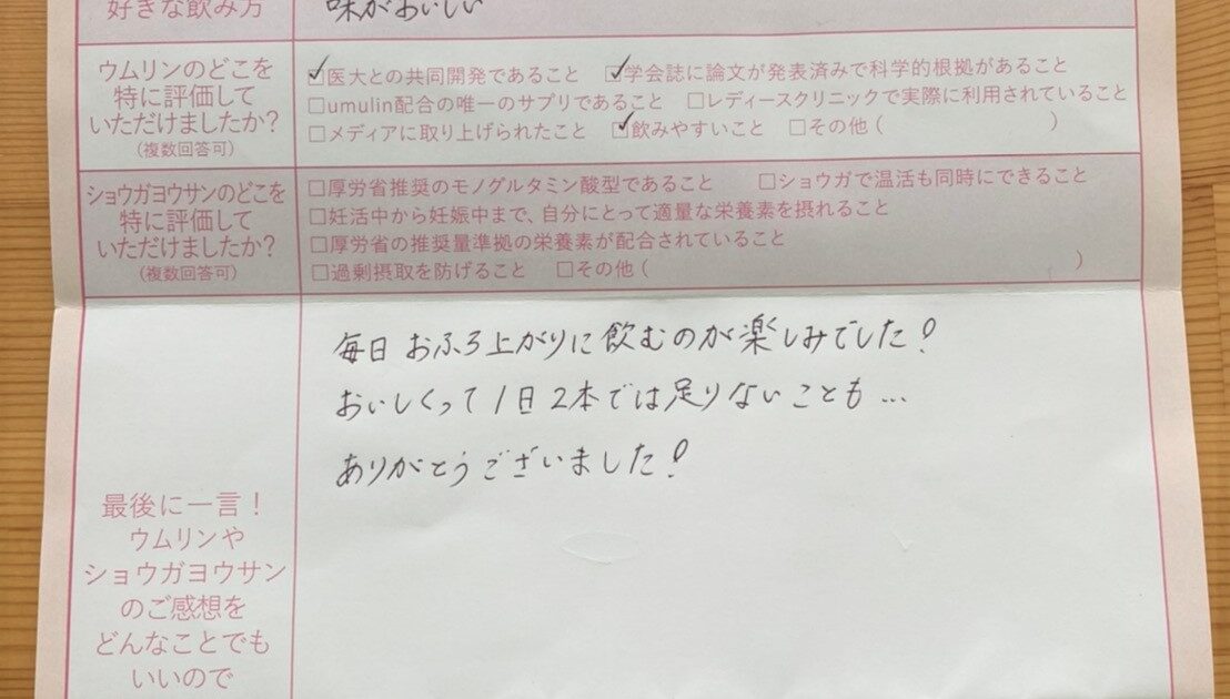 ウムリン飲むまで、味が合うかな?と不安でしたが とってもおいしかったです♡ 本当に飲んで良かったですし、味もおいしくておすすめです♡ この度はありがとうございました!