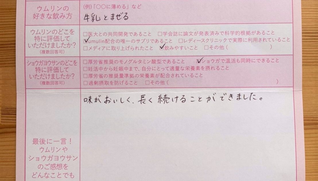 朝晩は難しかったので、夜だけ飲んでいました。ウムリンのおかげだと思っています。ありがとうございました。