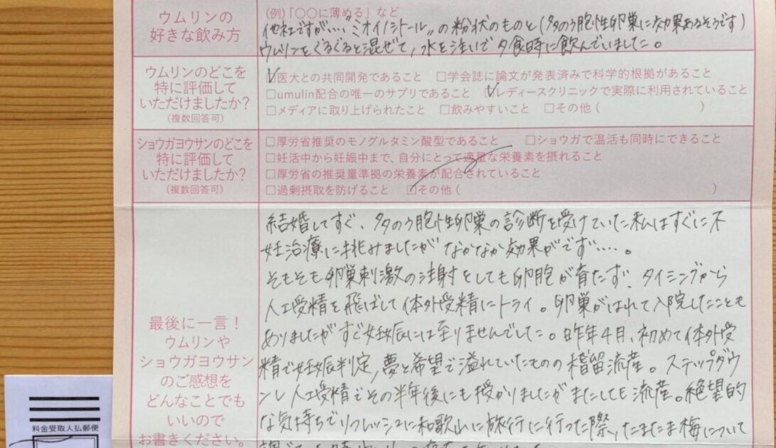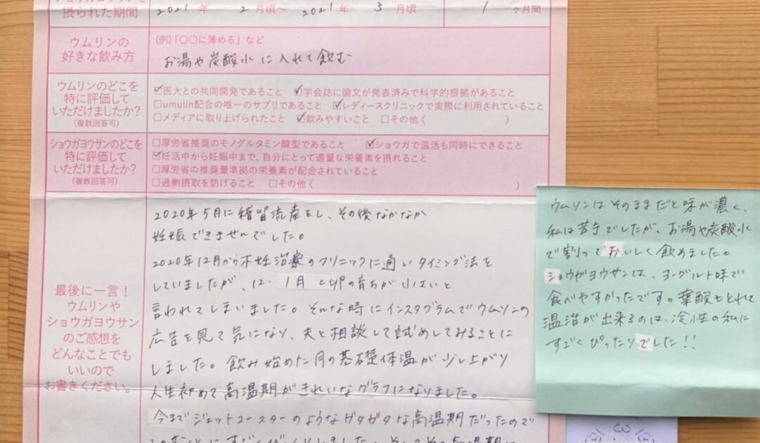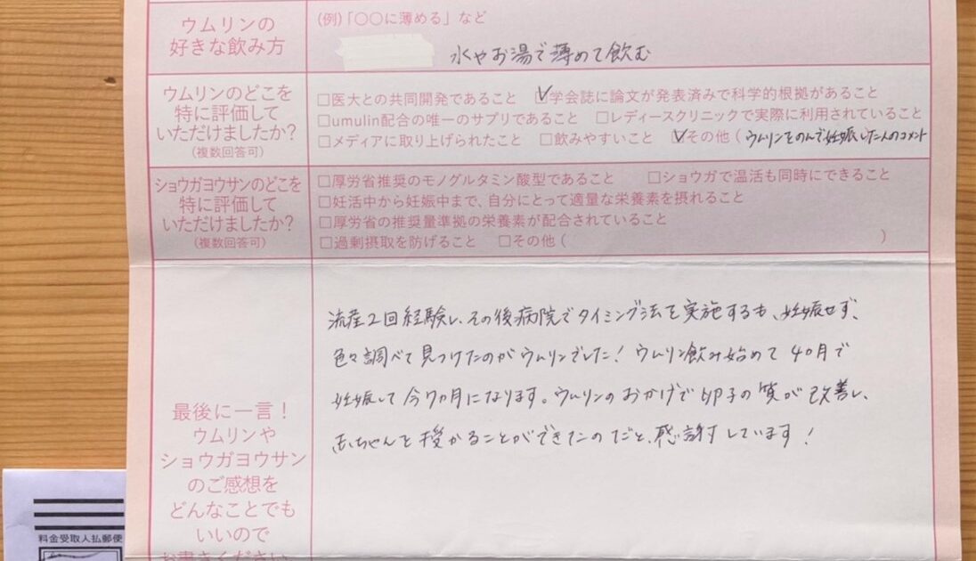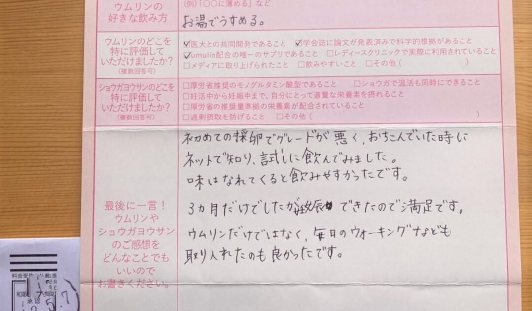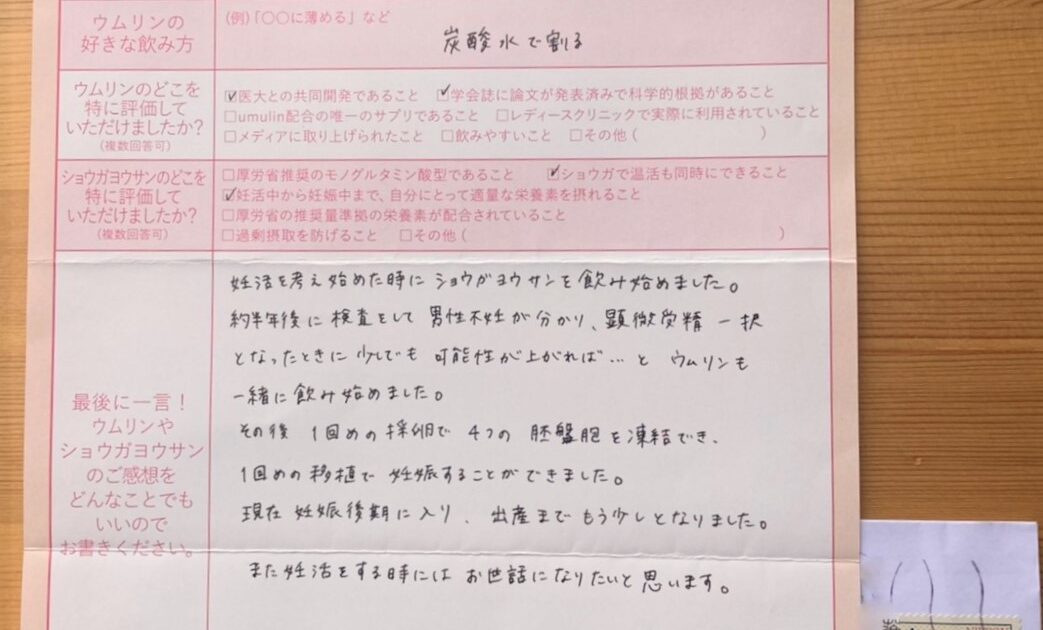 ネットやSNSで妊活をしている方の情報を検索する日々…。 そこで、ウムリンのこと知り、少しでも改善できればと思い定期購入しました。まだまだ安心はできませんが、検診のたび大きく育ってくれている姿を見ると本当に嬉しいです。今 […]