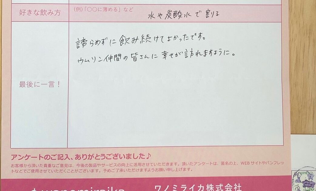 ウムリンは梅が好きだったので、苦にならず、飲むことができました。
