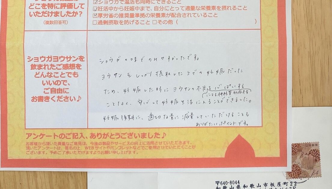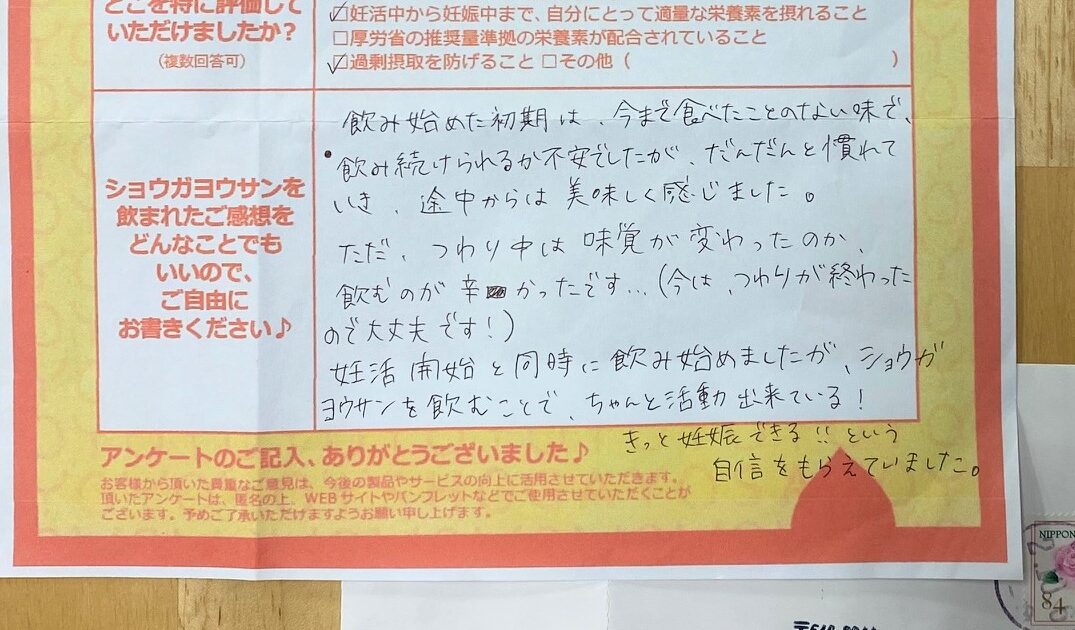 ショウガ葉酸は1日1つでいいという所が気になり試してみました。タブレットでかむだけなので朝忙しくても忘れずに続けられました。