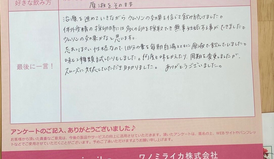 忘れっぽい性格なので1日分の量を毎朝白湯とともに原液で飲んでいました。味も2種類試したりもしました。何度も味を変えたり、周期を変更しましたが、スムーズに対応して頂き助かりました。ありがとうございました。