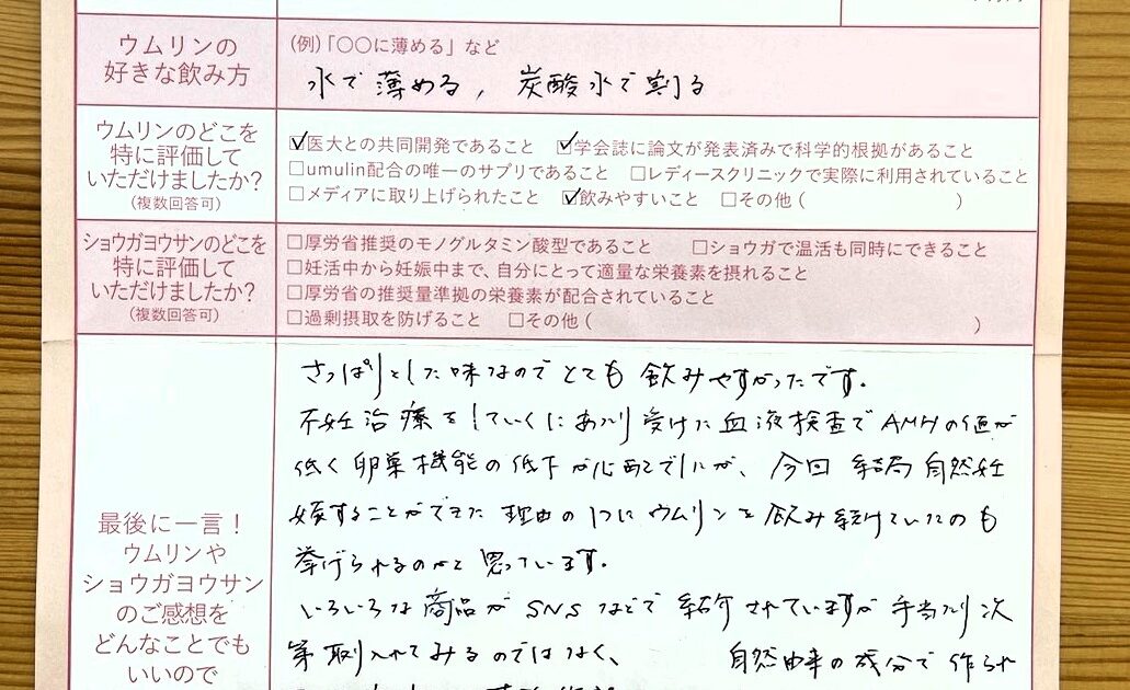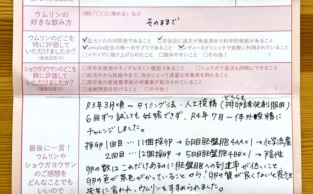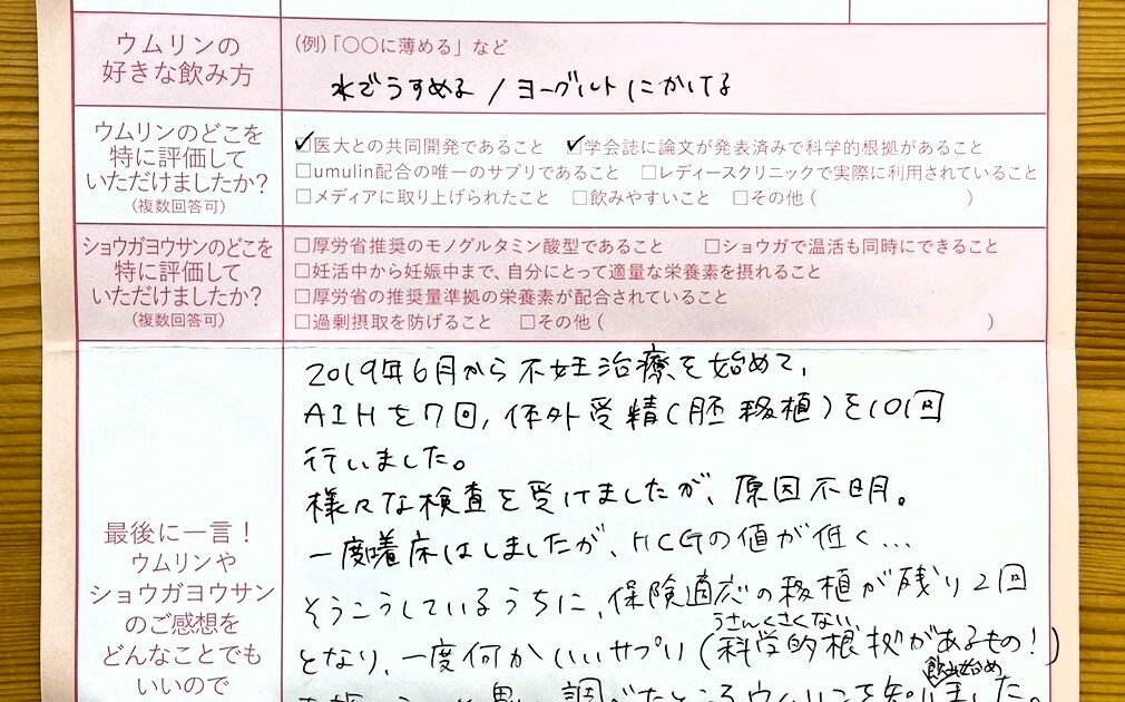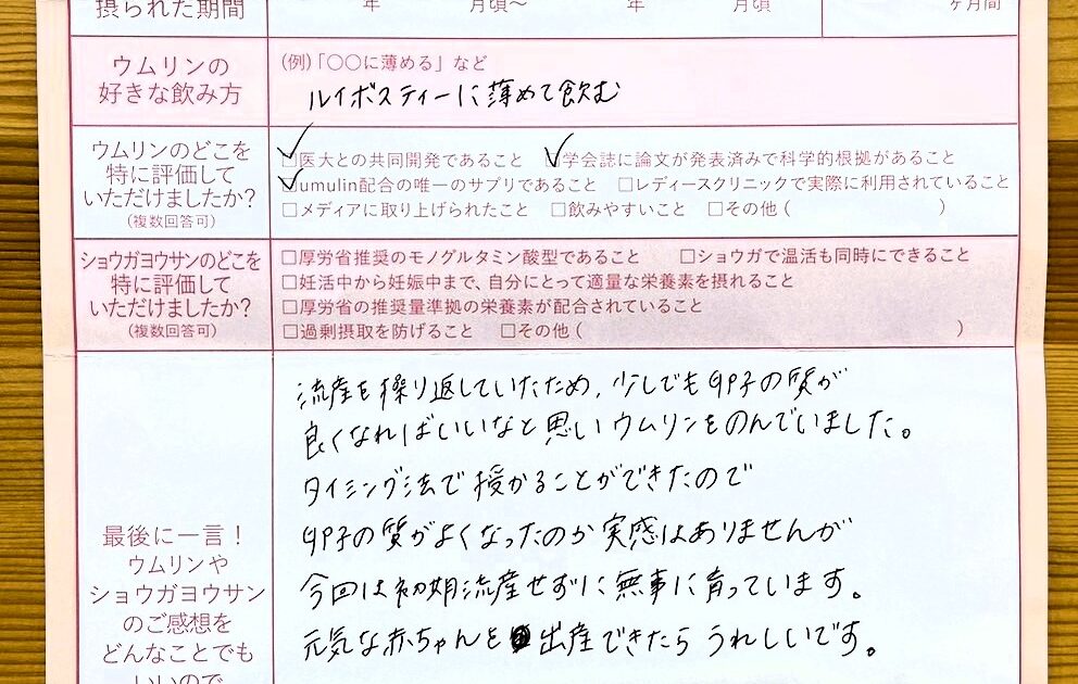 ウムリンをのんでいました。元気な赤ちゃんを出産できたらうれしいです。
