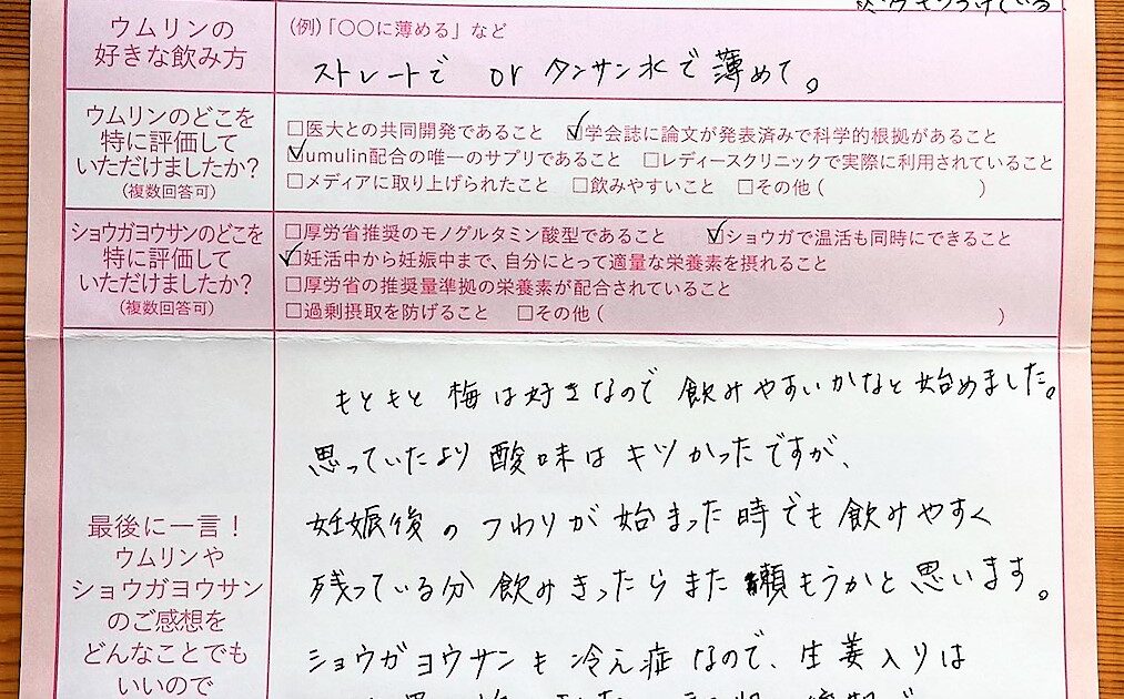 もともと梅は好きなので飲みやすいかなと始めました。思っていたより酸味はキツかったですが、飲みやすく残っている分飲みきったらまた頼もうかと思います。ショウガヨウサンも、生姜入りはいいと思い始めました。初期と後期で2パターン […]