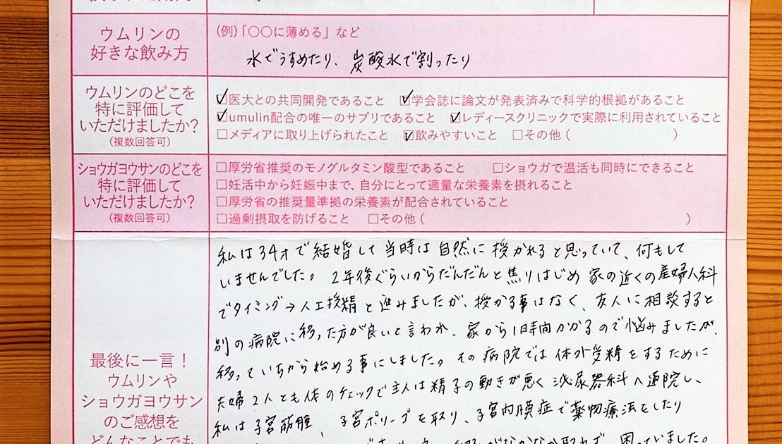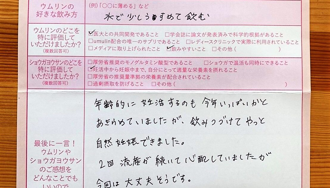 私は34才で結婚して当時は何もしていませんでした。そんな中、ウムリンの事をSNSで知り飲んでみました。すごくうれしかったです、本当にウムリンを飲んでいて良かったと思いました。赤ちゃんに会いたいです。女の子かもという事です […]