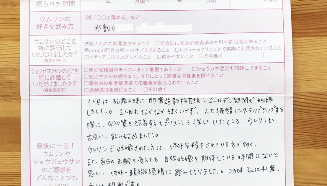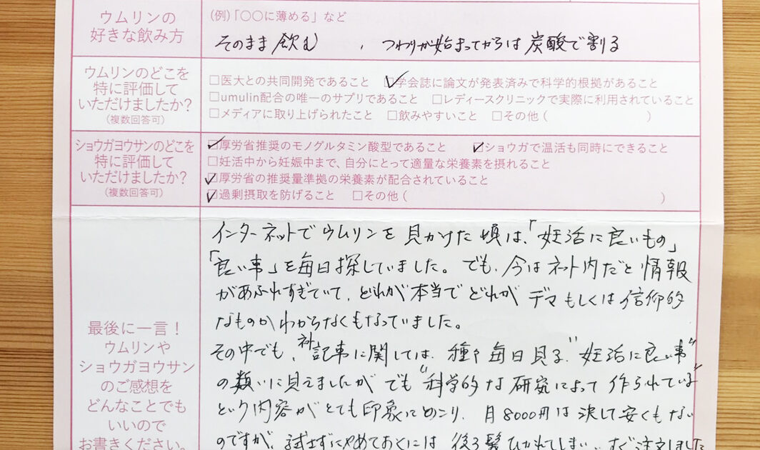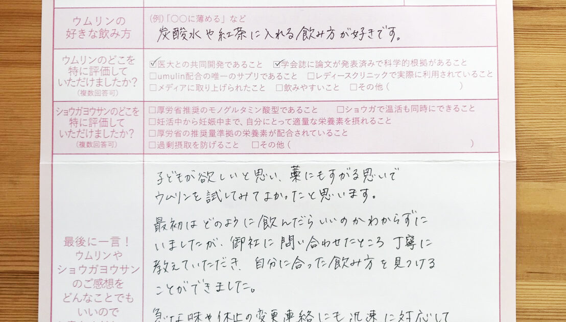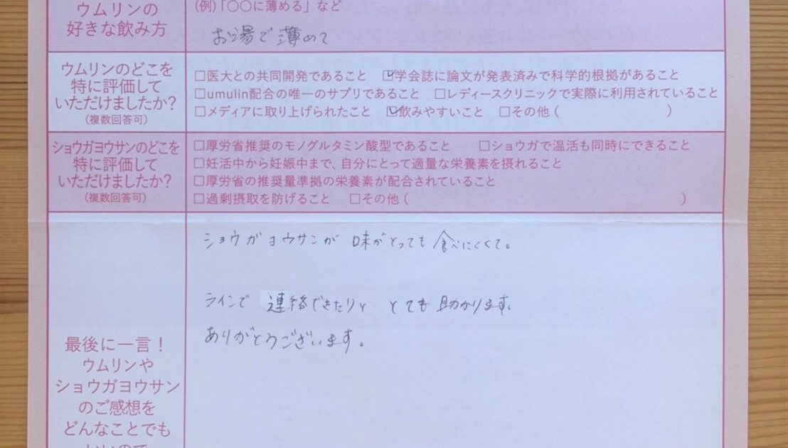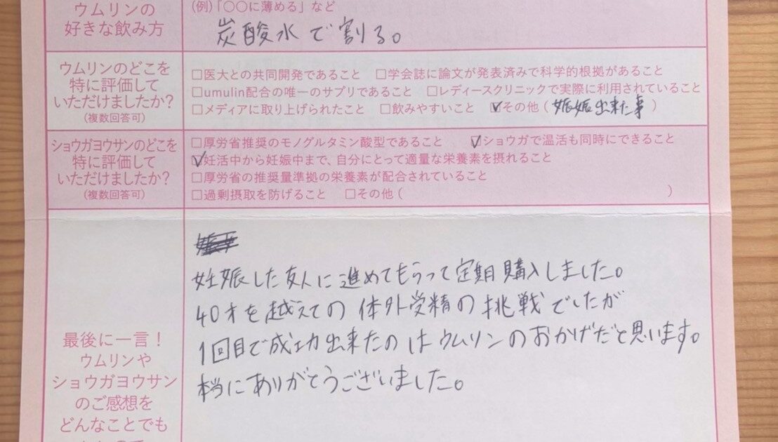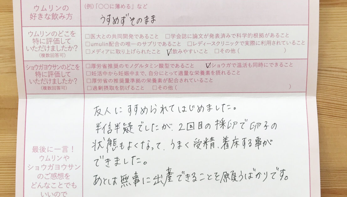 友人に進めてもらって定期購入しました。ウムリンのおかげだと思います。本当にありがとうございました。