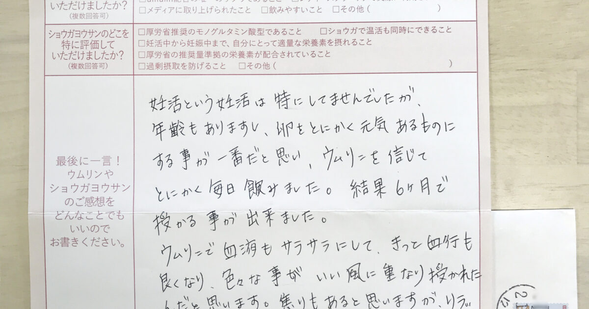 つわりで飲みつづけることが出来ていませんが、落ち着いたらまた飲みたいと思います。